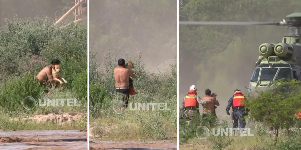 Tras las labores de rescate que se desplegaron este miércoles en el municipio cruceño de La Guardia ante la crecida del río Piraí, hubo una situación que no pasó desapercibida por las cámaras de UNITEL: un draguero salvando a su mascota.