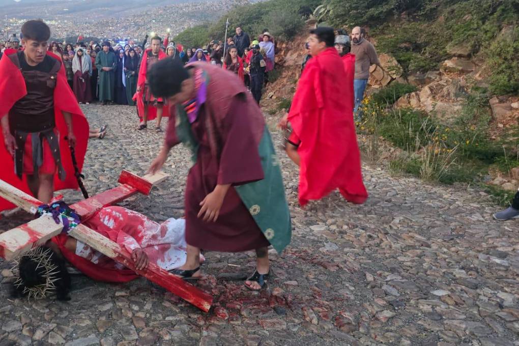 La procesión de Viacrucis se realizó en las primeras horas de esta jornada en la zona del Cristo de la Concordia en Cochabamba, lugar al que llegaron feligreses para acompañar a las personas que manifestaban su fe con esta representación.