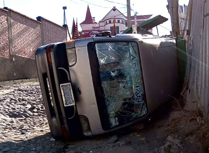 En medio de los enfrentamientos, varios choferes resultaron heridos mientras otros algunas personas volcaron a fuerza de brazo al menos dos vehículos.