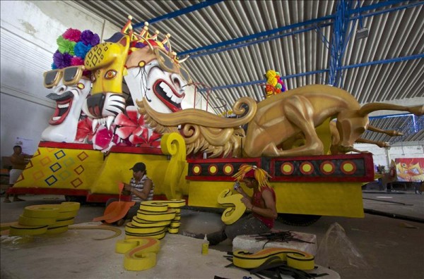 El escultor y creador de una de las carrozas monumentales Álvaro de la Hoz, explicó a Efe que cada uno de ellas tiene un costo aproximado de quince millones de pesos (unos 6.350 dólares).