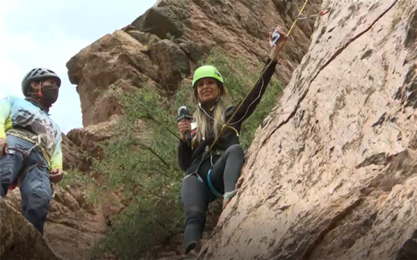 Sandra Alcázar se animó a realizar escalada y rapel en roca