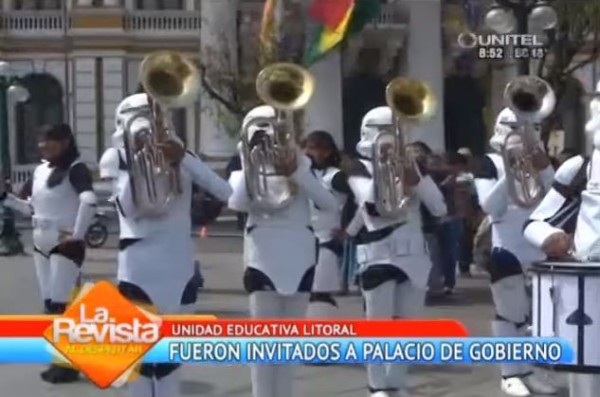 Desde Caracollo el colegio visitó la plaza San Francisco donde los transeúntes disfrutaron del talento de varios jóvenes en una interpretación de la banda sonora de la película Star Wars.