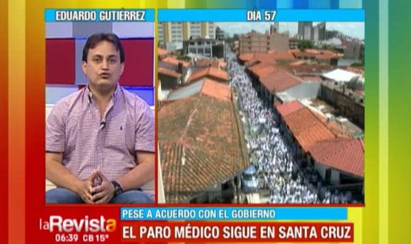 Eduardo Gutiérrez, representante de la Coordinadora Departamental ‘Por la Libertad’, manifestó que se le pidió al sector médico de Santa Cruz que por medidas humanitarias suspendan su paro y atiendan a la población, pero ellos se mantienen firmes en su posición y afirma que de suspenderse el paro saldrían en movilizaciones a las calles, ahora diferentes sectores saldrán al segundo anillo a bloquear todas las rotondas y pide a la población que se involucre como en el paro cívico.