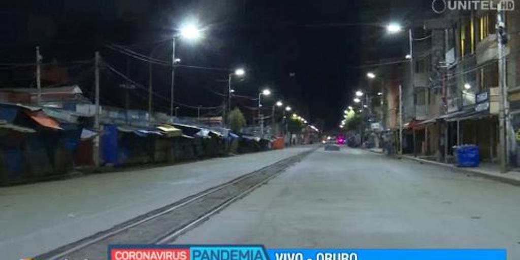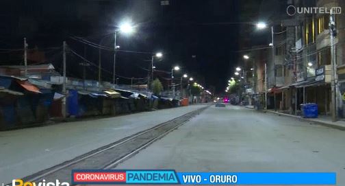 En la avenida 6 de agosto, frente al mercado Campero, en Oruro, no se registra movimiento de personas, en este primer día de emergencia sanitaria en el país.