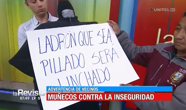 Debido a la inseguridad y hechos de robo, vecinos de ciudad de El Alto colgaron muñecos con advertencias, de que si agarran a alguno los lincharán.