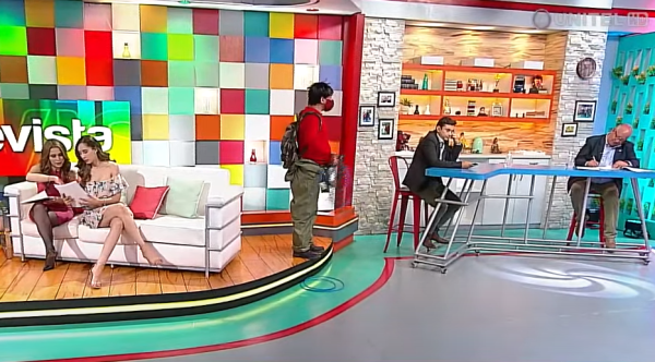Hasta el set de La Revista en La Paz llegó el conserje Pamelo para hacer algunos reclamos por el “desorden” que hay en el canal.