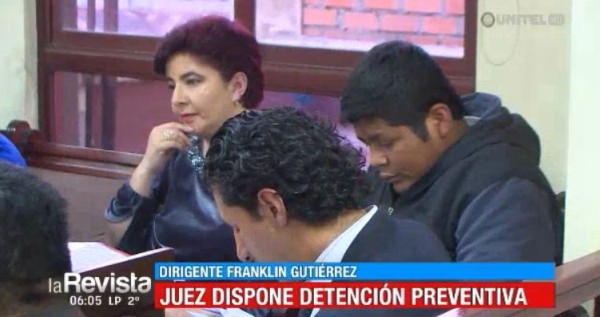 La noche del martes el juez octavo de instrucción a lo penal decidió enviar a la cárcel de manera preventiva al dirigente cocalero de Adepcoca, Franklin Gutiérrez, acusado por asesinato, tentativa de asesinato, atentado contra los servicios públicos y de transporte, además de portación ilícita de armas, su defensa afirma que el Ministerio Público se basó en perfiles y mensajes de otras personas.
