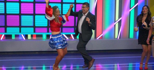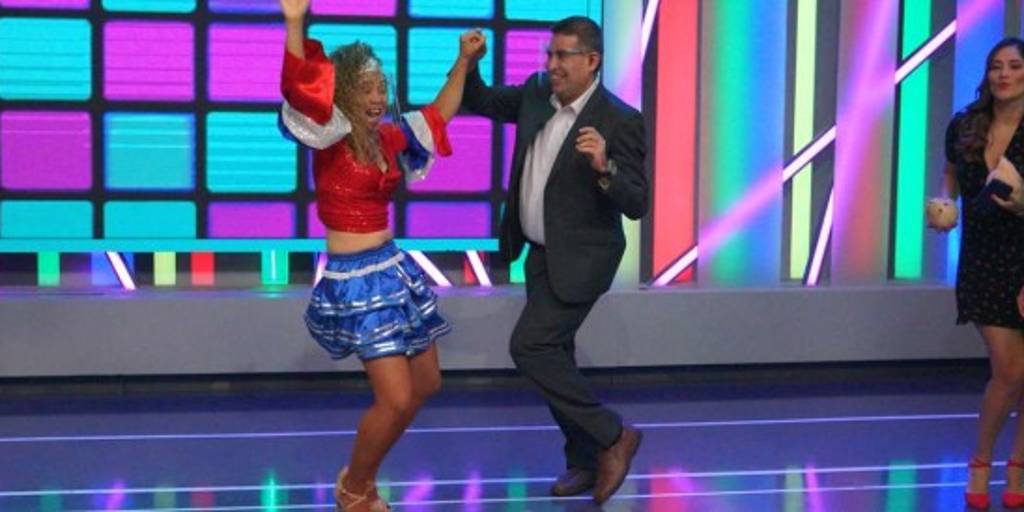 La experimentada bailarina sacó sus mejores pasos de baile por lo que el presentador no se quiso quedar atrás y mostró sus dotes escondidos en la danza.