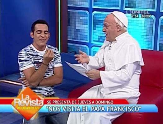 El representante máximo de la iglesia católica visitó La Revista, ésta vez el nuevo personaje de Fico interpretó a "su santidad " el Papa Francisco y llegó a bendecir al país e invitar a todos a su presentación en el teatro René Moreno.
