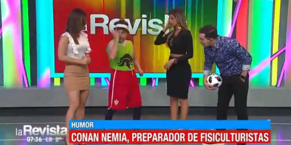 Volvió Conan Nemia, el preparador profesional de fisiculturistas. Llegó para ver el estado de los presentadores de La Revista.