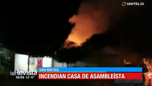 Tres sujetos ingresaron a la casa de la asambleísta Ceidy Carreño en San Matías y le prendieron fuego. Según los testigos, los tres hombres que entraron eran de nacionalidad brasileña. Una persona quedó con heridas de gravedad.