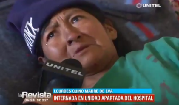 Lourdes Quino quien se encuentra recluida en el Hospital de Clínicas narró como sus hijos les pedían comida y ellos no tenían que darles, la mujer llora de impotencia por haber perdido a una de sus hijas a causa de la desnutrición.