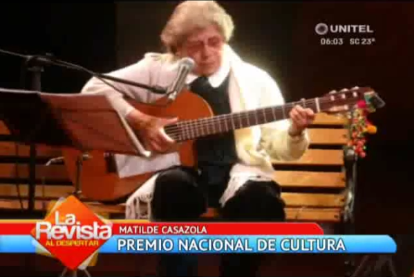 La escritora, compositora y cantante chuquisaqueña recibió el Premio Nacional de Gestión Cultural Gunnar Mendoza. El Gobierno le otorgará Bs. 40.000 como reconocimiento en virtud a su amplia trayectoria. El !Premio Nacional de Culturas! es de la poetisa Matilde Casazola, obteniendo el 100% de los votos y considerada como "Tesoro Humano viviente".