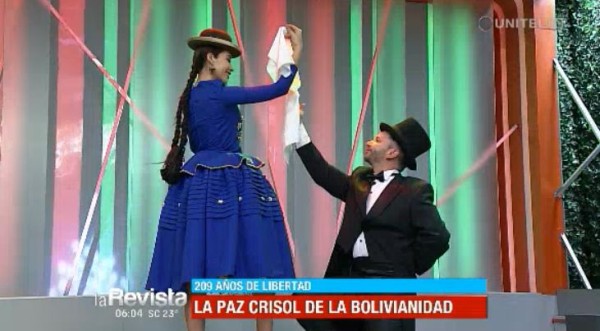 Los presentadores decidieron homenajear a la ciudad de La Paz de una manera diferente, por lo que este lunes nos demostraron sus habilidades para el baile con una típica vestimenta.