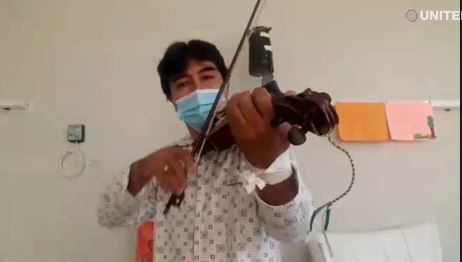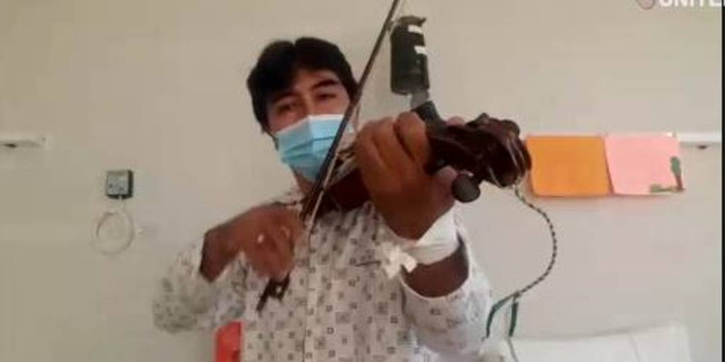 El talentoso paciente afirmó sentirse en buen estado de salud pese haber contraído el Covid y lo que busca transmitir con su música, son buenas vibras para todos aquellos que pasan por esta difícil situación y para el personal médico que los atienden día a día.