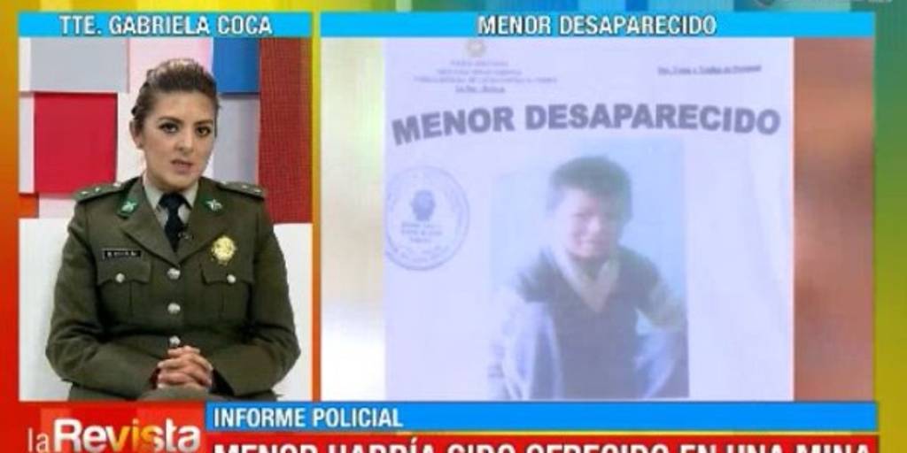 La teniente Gabriela Coca, directora de la Unidad de Trata y Tráfico de La Paz, se refirió al caso de un menor desaparecido durante una celebración en la provincia de Muñecas que supuestamente habría sido entregado como ofrenda en una mina, la teniente manifestó que esto aún se debe corroborar, por lo que una comitiva viajará hasta este lugar y comprobar si se realizó o no este lamentable hecho, los padres del menor desaparecido esperan una investigación y así dar con el paradero del niño.