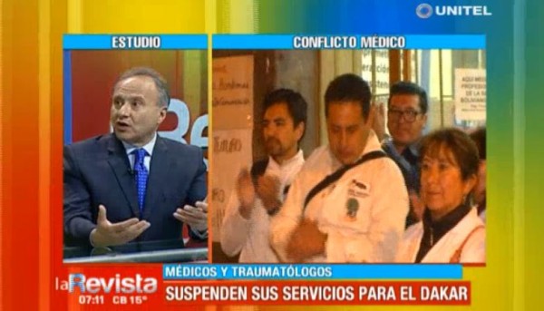El doctor Alejandro Reyes, presidente de la Sociedad de Traumatología y Ortopedia, reiteró que no participaran dando su servicio para el Rally Dakar del próximo mes, afirman que sus medidas continuarán ya que el Gobierno no tiene una intención de diálogo abierto con el sector, por lo que pide que la Iglesia sea mediadora en el problema para que así se pueda solucionar, además, manifestó que pese a estar 28 días en paro no pararán hasta que se solucione.