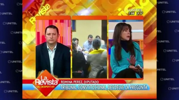 Santa Cruz, 2 de octubre de 2015.- El diputado de UD, Luis Felipe Dorado y la diputada del MAS, Romina Pérez, estuvieron en La Revista donde se refirieron a la aprobación de la pregunta del referéndum y la fecha del mismo por la Comisión Mixta de Constitución.