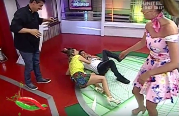 Mira la caída de Ronald Arnez y Grisel Quiroga en la presentación La Batidora
