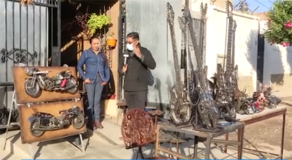 Por lo que nos trasladamos al taller de Maribel Caucota, una mujer cochabambina que contribuye al planeta con sus trabajos de reciclaje realizando trabajos de artesanía con metal.