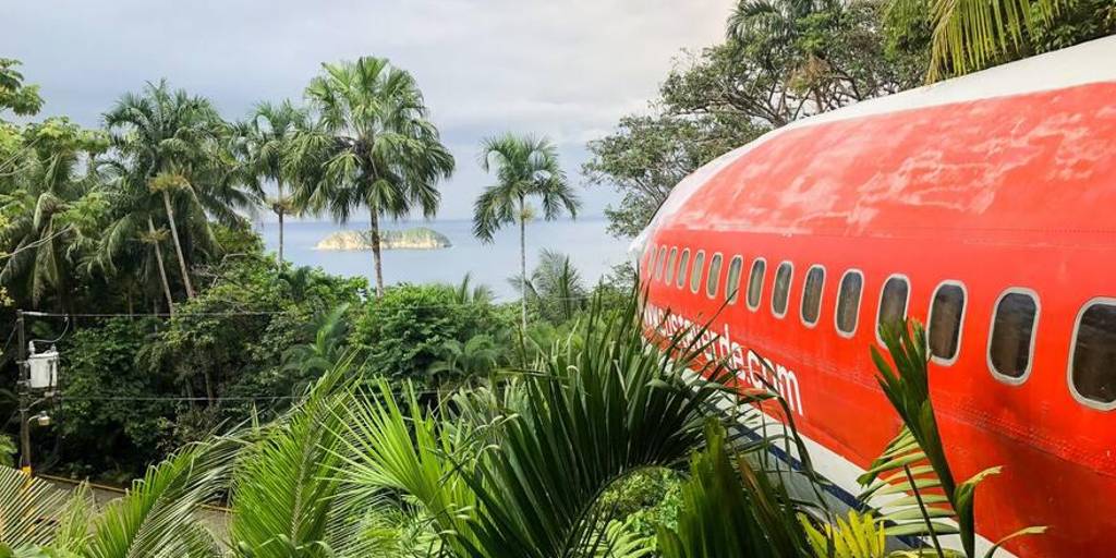 Con acceso a través de una escalera caracol, la vivienda también incluye un área de comedor, una cocina ubicada en la cabina de los pilotos, televisión satelital y terrazas en cada ala que tienen de vista a la inmensidad del Océano Pacífico y a los monos cappuccinos de pasajeros frecuentes, reseña La Nación,