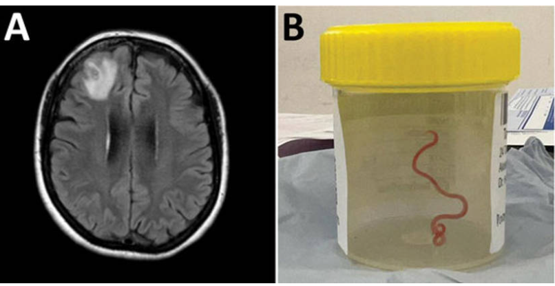 Un gusano parásito de 8 cm de longitud se localizó en el cerebro de la paciente durante una operación.