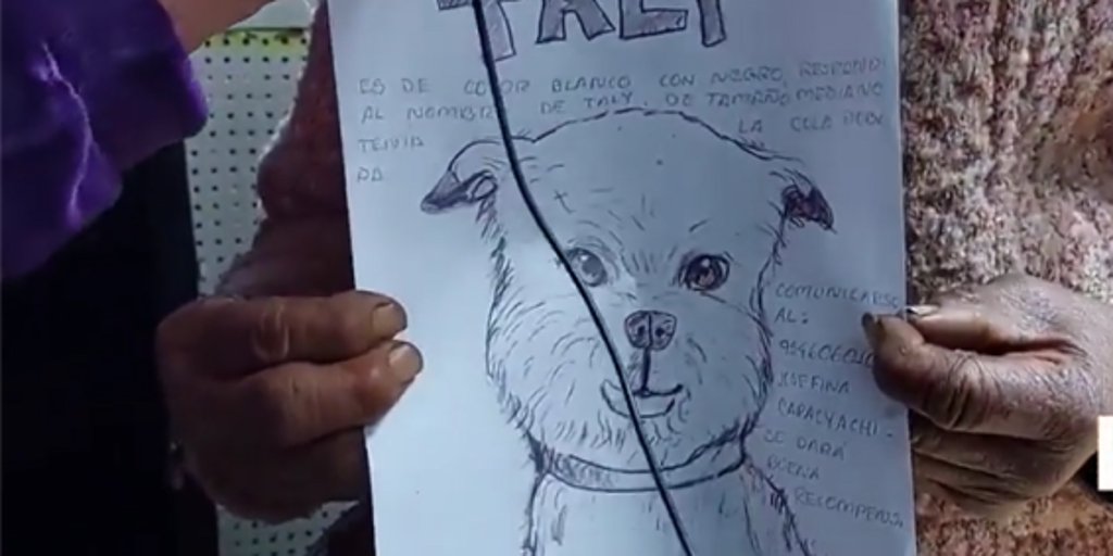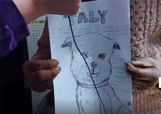 Josefina es de la tercera edad y no utiliza teléfono inteligente, por lo que no cuenta con una fotografía de Taly, pero para ayudar a que las personas la pueda identificar tuvo que hacer un dibujo de la mascota.