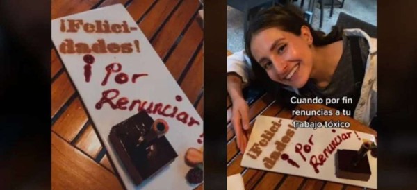 Una joven se volvió viral luego de compartir las imágenes de su celebración tras renunciar a su “trabajo tóxico”. La usuaria de TikTok compartió en su cuenta un video en el que junto a su familia y un pastel salió de casa para festejar su renuncia "como se debe".