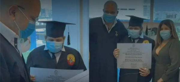Joven con cáncer falta a su graduación tras ser hospitalizado y rector le lleva su título al hospital