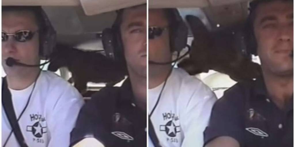 Las imágenes que han causado revuelo en redes sociales muestran el momento exacto en el que el can comienza a levantarse de su asiento para terminar flotando cerca del techo de toda la avioneta, mientras el piloto y el copiloto no se percatan de que el animal está "flotando".
