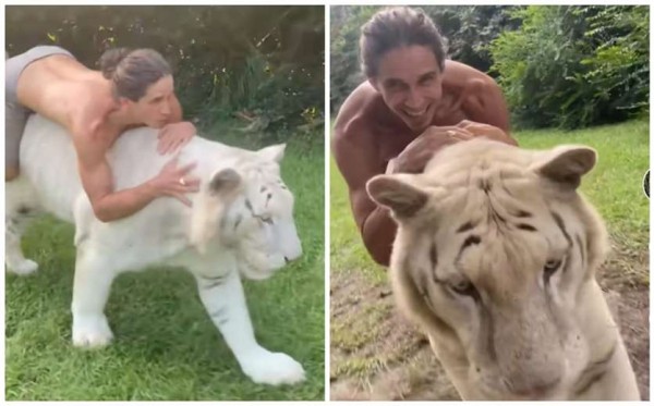 Video viral: Hombre arriesga la vida y monta a un tigre blanco para grabar TikTok