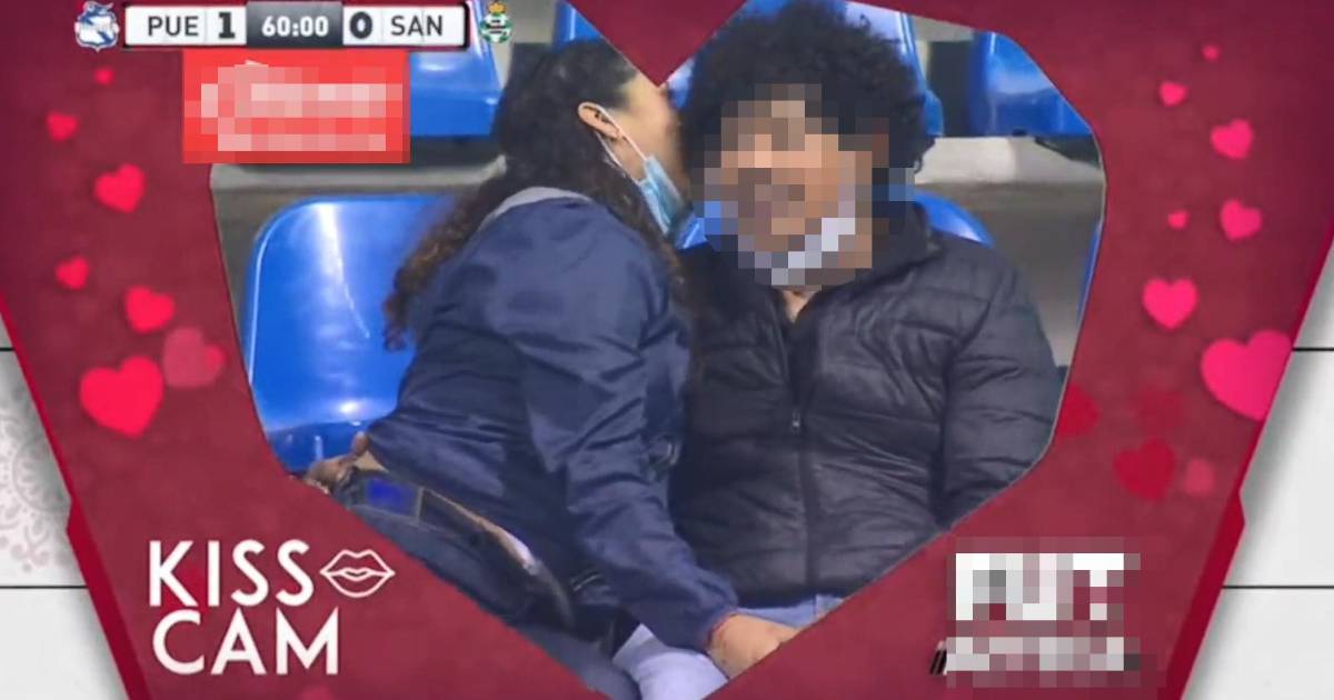 La ‘cámara del beso’ o ‘kiss cam’ es una cámara que en eventos deportivos de algunos países captan imágenes curiosas de las personas que van a apoyar estas actividades y hacer vivir momentos de risas. Pues bien, en un partido que se disputaba entre Puebla y Santos Laguna por la liga mexicana, se captó a una pareja besándose.