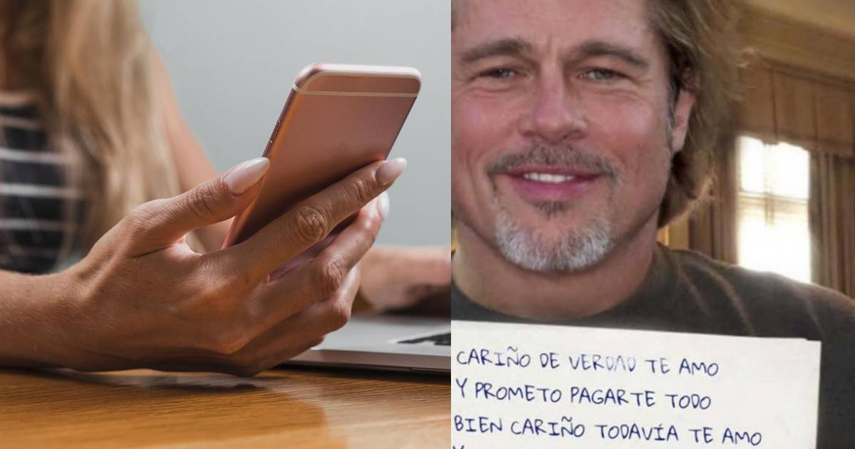 El “falso Brad Pitt” según la mujer, chateaba con ella y le enviaba hasta fotos con mensajes y dedicatorias, obviamente todo era fotomontajes que realizan los delincuentes. En el expediente con pruebas, hay mensajes cariñosos y una fotografía con un mensaje donde el “falso actor” promete devolverle el dinero.
