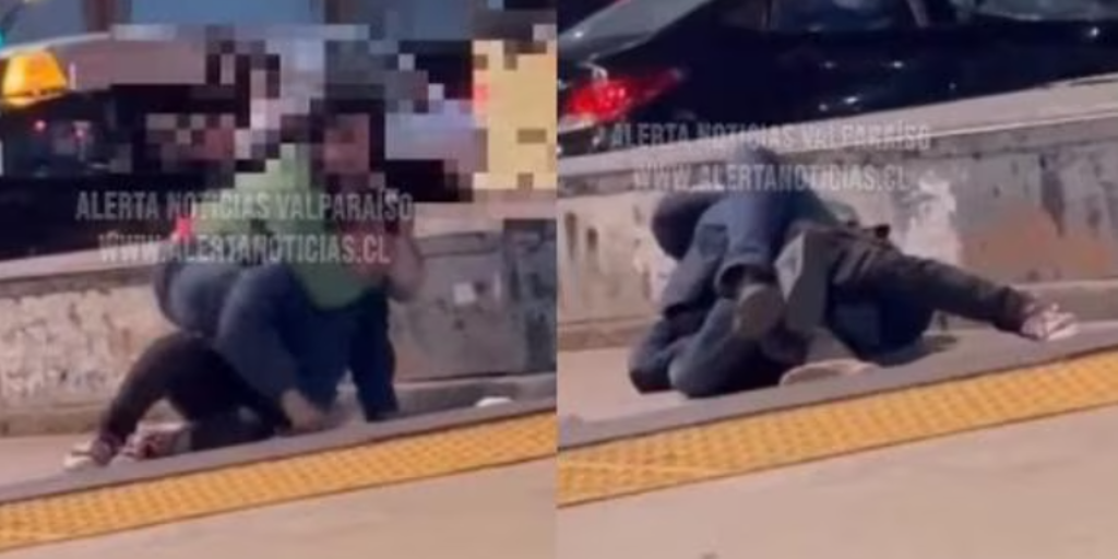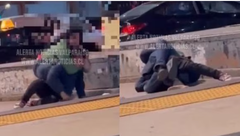 Transeúntes captaron en un video el momento en que un sujeto amenaza con un cuchillo a un joven que reacciona y le da una paliza