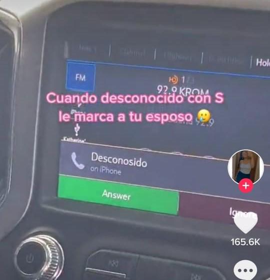 “Cuando un ‘desconosido’ le habla a tu esposo”, colocó la tiktoker en la descripción del video con un emoticón de una carita llorando. Grabó como ella misma era la que decidía “ignorar”, la llamada.