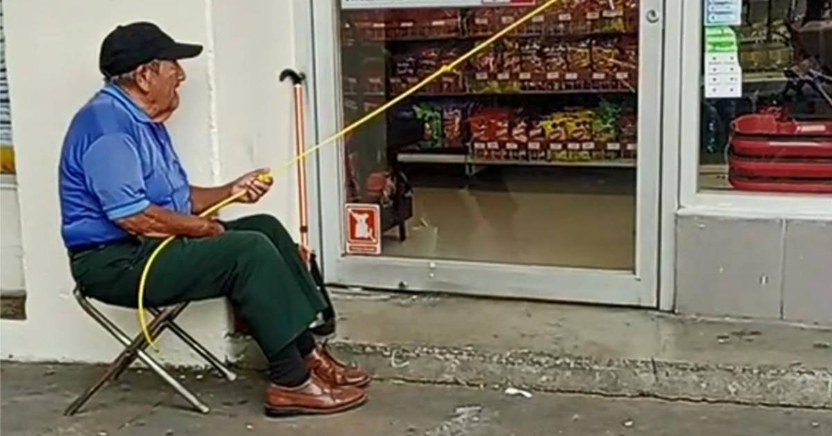 Una persona filmó al hombre de la tercera edad para resaltar que “no hay excusas para no trabajar”.