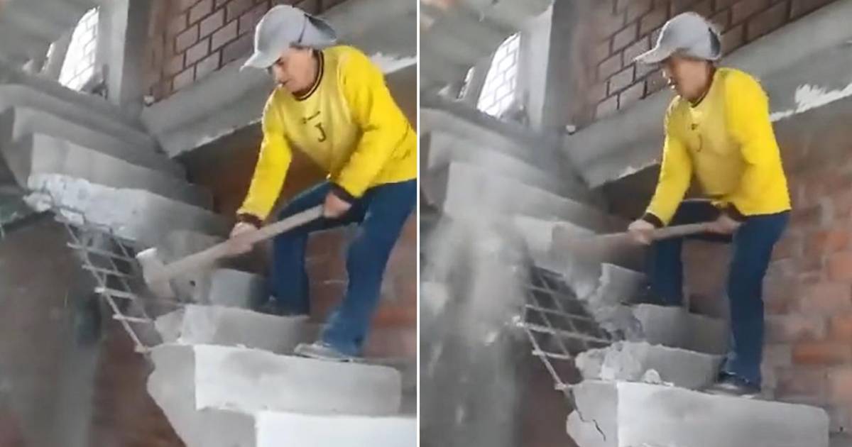 Mientras el albañil continúa deshaciendo el concreto de la escalera, otro de sus colegas lo alienta a seguir destruyendo la obra. “túmbale, túmbale todo, túmbale”. La reacción del albañil se viralizó en esta cuenta donde los usuarios dejaron sus críticas, señaló el medio Magazine.