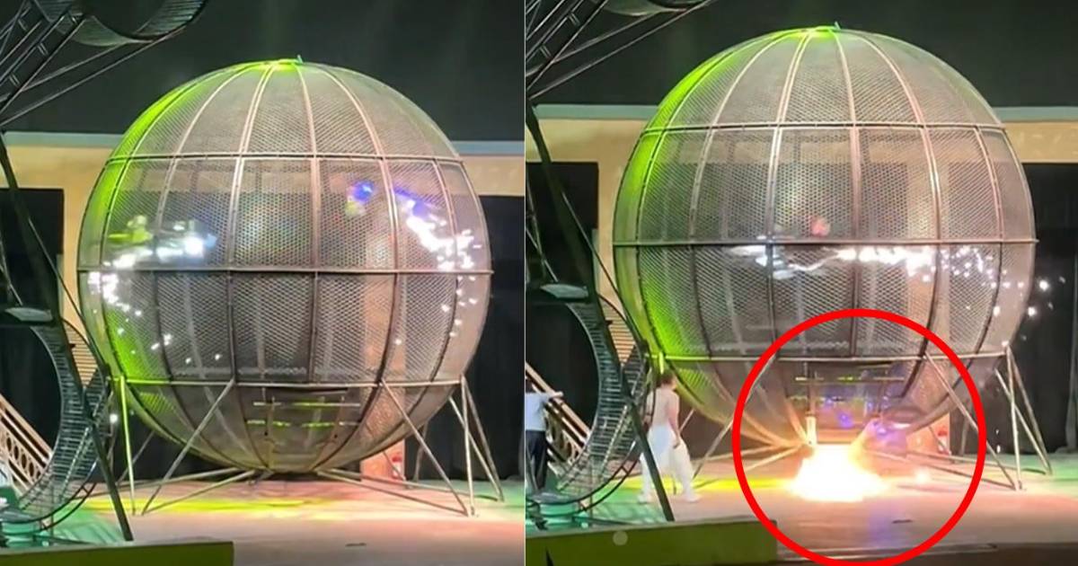 El acróbata se incendió mientras realizaba el acto junto a uno de sus compañeros. Según un video que se viralizó, los motociclistas están dando vueltas dentro de la jaula con chispas que desprenden de uno de los motorizados.