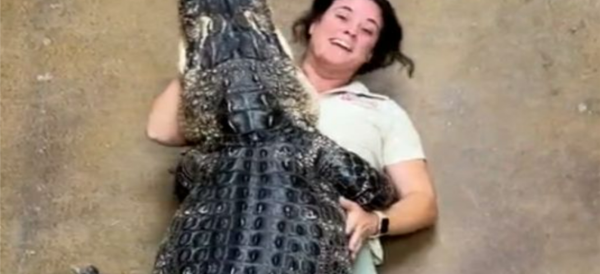 El insólito abrazo de un caimán de 90 kilos a una mujer que se hizo viral en redes sociales