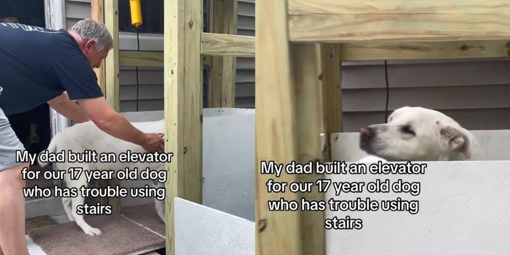 Según el relato del video al parecer por los años el perrito tiene dificultades para caminar motivo por el que el hombre decidió construir el ascensor. “Mi papá construyó para nuestro perro un elevador porque tiene 17 años y ha tenido dificultades para subir las escaleras”, titula el clip que se ha viralizado en TikTok.