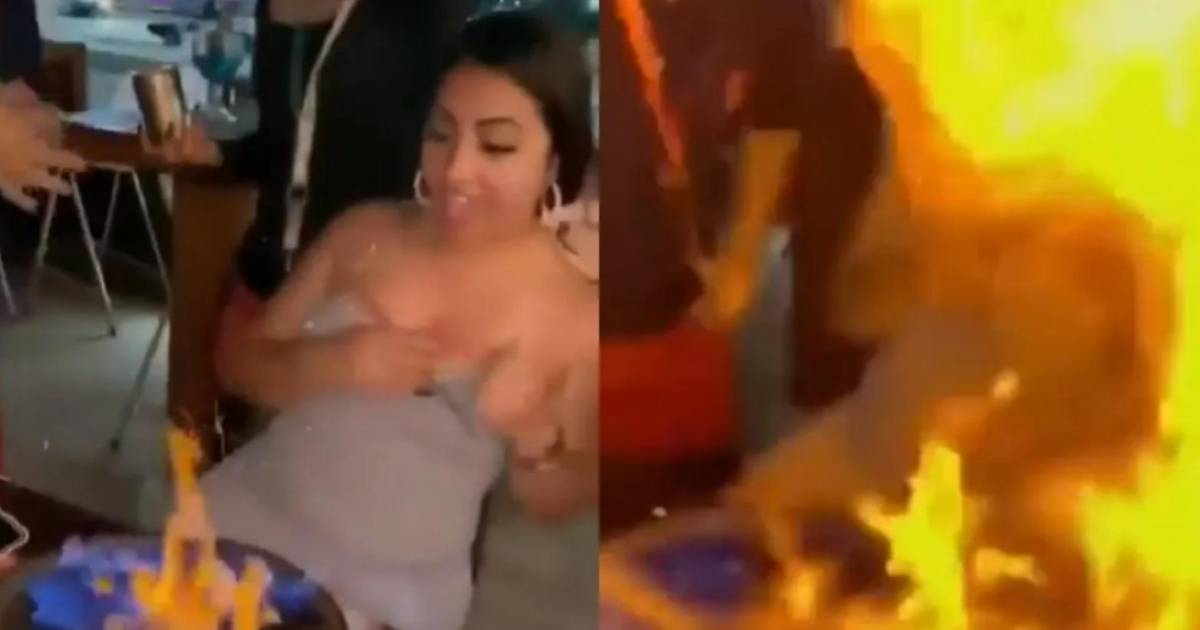 En el clip se observa cuando los meseros del lugar llevaron una bebida en llamas como parte de la celebración; sin embargo, el festejo terminó en una tragedia, pues las cosas se salieron de control y el vestido de la festejada se incendió tras ser alcanzada por el fuego. Además, otra invitada a la celebración terminó con la cabeza en llamas.