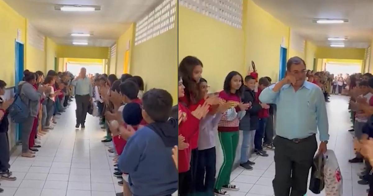 Sus estudiantes se formaron en fila haciendo un corredor para aplaudir a su profesor por los años dedicados a la enseñanza. Un video capturó el emotivo momento donde se ve a Silveira rompiendo en llanto al ver a los jóvenes que, según él, eran símbolo de una relación de cariño y respeto que se construyó durante todos estos años.