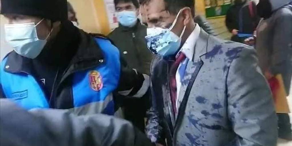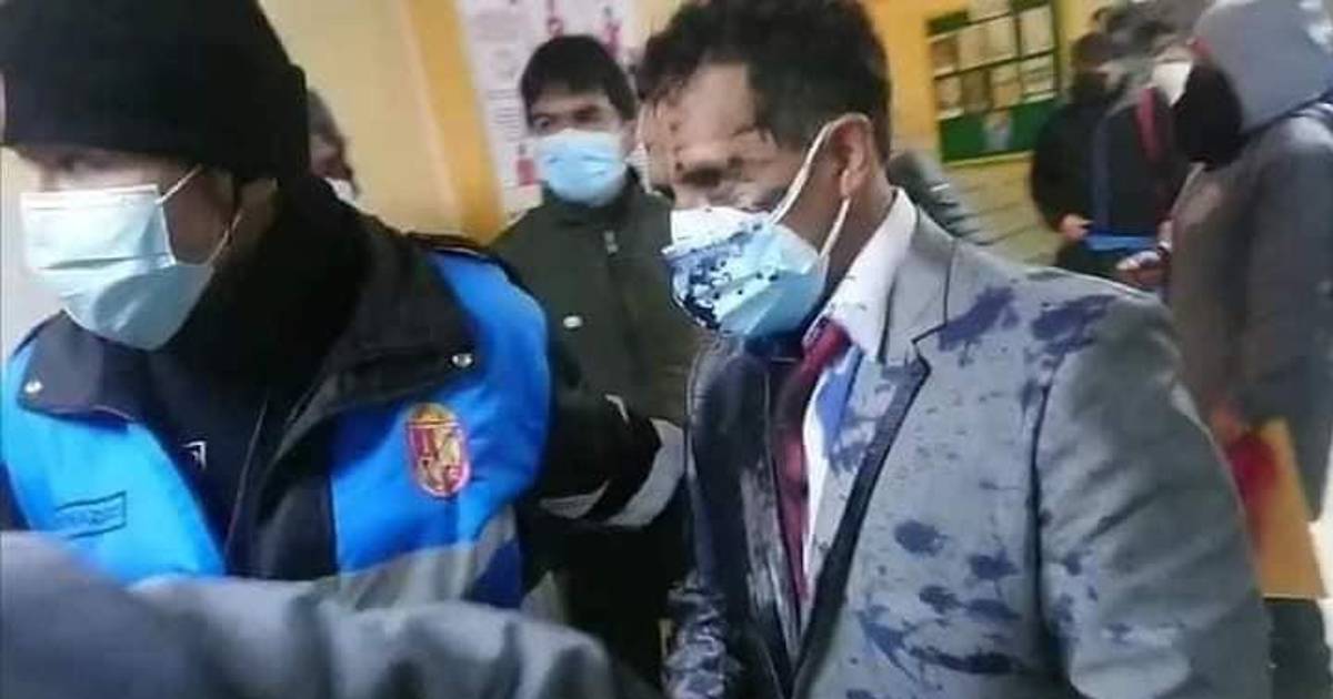 Los hijos de este hombre con su primera mujer, llegaron hasta una iglesia de la provincia Pasco (Perú) y lanzaron pintura negra en el traje de boda de su padre.