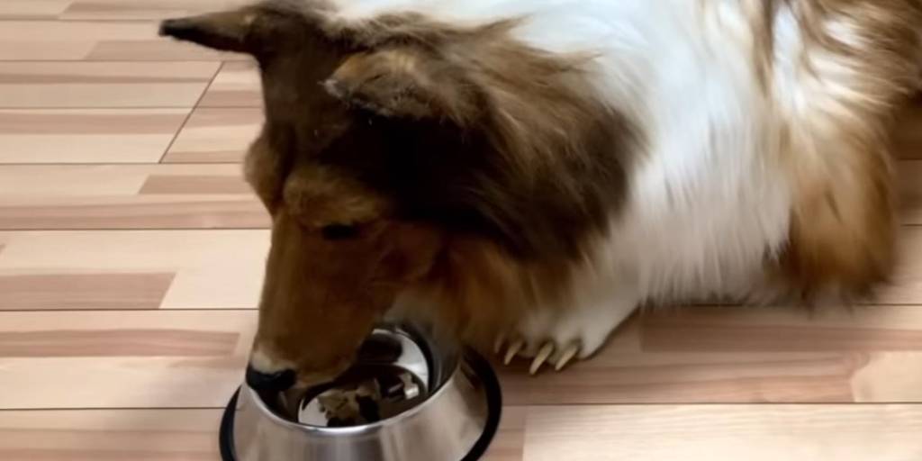 Hombre que se transformó en un perro Collie se graba consumiendo “comida para mascotas”