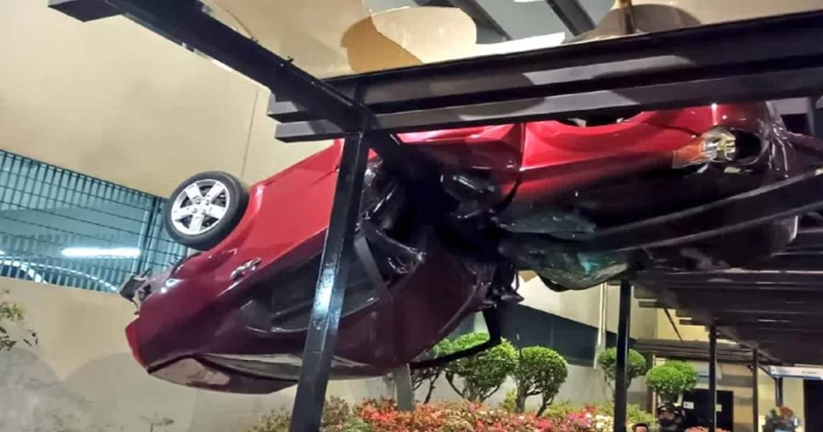 ¡Impresionante! Joven recordó cómo su automóvil cayó del cuarto piso de un estacionamiento