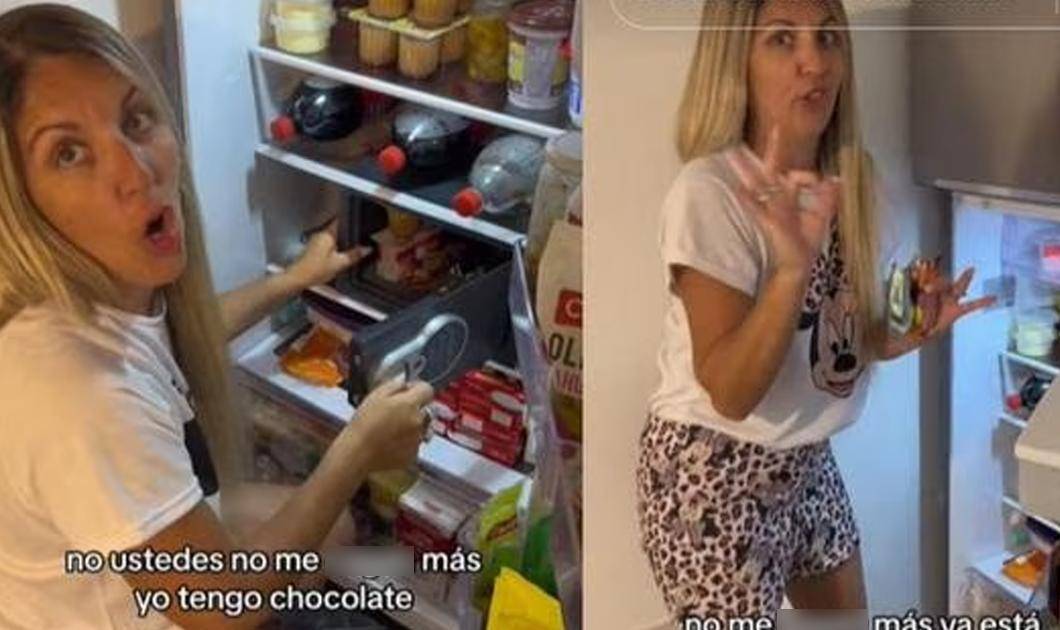 En el clip se ve a la madre sacando un par de chocolates de una caja fuerte que puso en una de las gavetas de la heladera. Puso la clave y volvió a cerrarla para evitar que se coman todo y la dejen sin su parte.