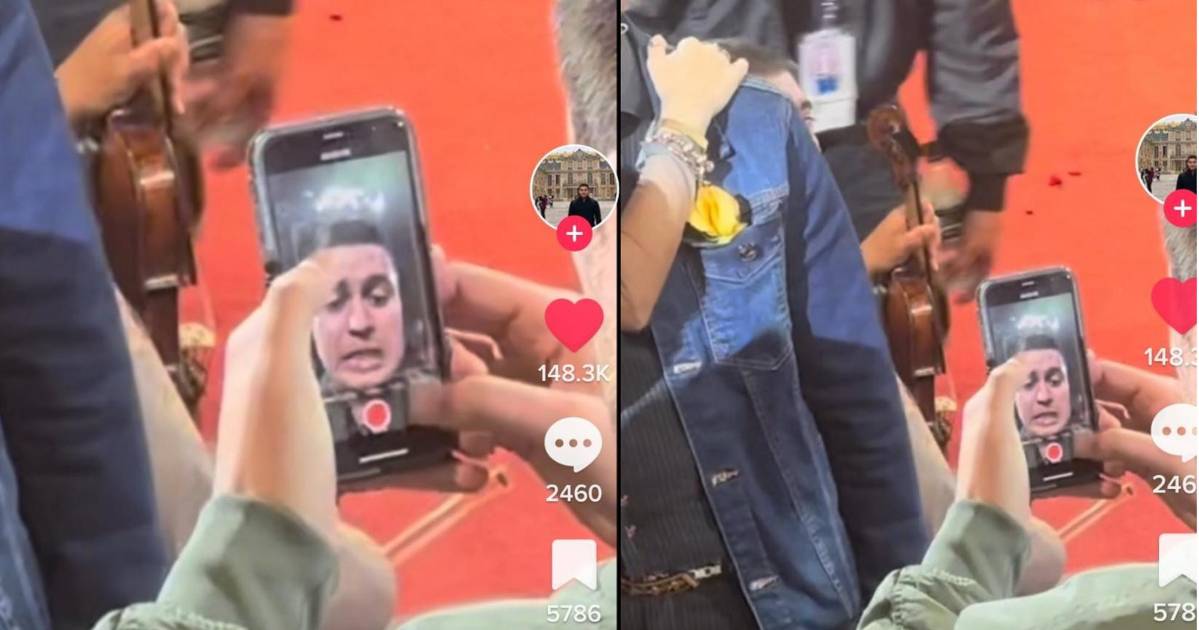 Otro de los presentes en este espectáculo filmó el momento. En el video se ve el gesto que hace el joven al darse cuenta que solo abrió la cámara frontal. Su expresión lo dice todo.
