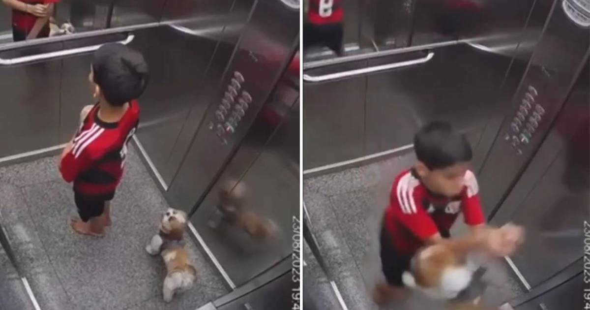 La impresionante reacción de un niño que salvó a su perrita cuando su collar quedó atrapado en la puerta de un ascensor