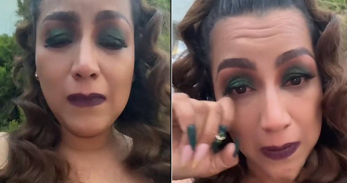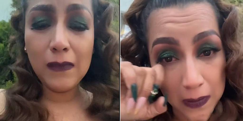 “Miren mi vestido me lo compré con mucho amor, me maquillé en fin”, explica la mujer.