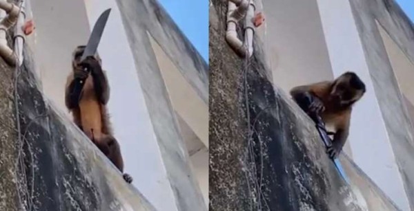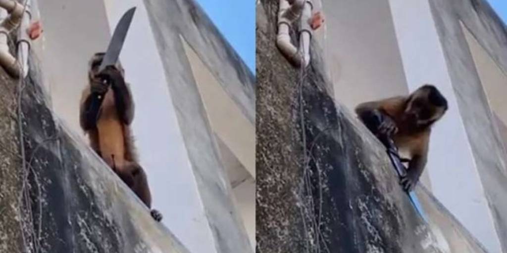 Un mono armado con un cuchillo de cocina asustó a los vecinos de la comunidad de Correntes, en el departamento de Piauí, en Brasil. Durante una semana, el animal estuvo golpeando las paredes con el cuchillo y andaba entre los tejados para luego ingresar a las casas y sacar galletas, comida y hasta cajas de jabón en polvo.